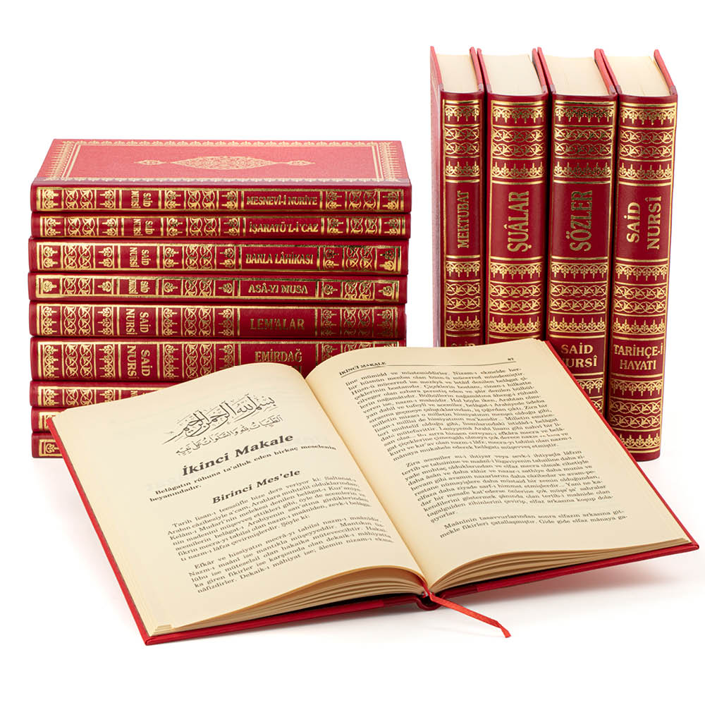 Özellikleri: Her Bir Kitap Ebadı: Büyük Boy 17x24 cm Kutu Ebadı: 36x26x19 cm Cilt: Sırtı Deri Sayfa Sayısı: 5714 Baskı: Tek Renk Kağıt: 70 gr Şamua Ağırlık: 10850 gr. Stok Kodu: EN1011 Barkod: 8683695680188 Risale-i Nur Külliyatının içeriği: Sözler Şualar Tarihçe-i Hayat Mektubat Emirdağ Lahikası Lem alar Barla Lâhikası Asa-yı Musa Mesnevi-i Nuriye İşârâtül İcaz Sikke-i Tasdik-İ Gaybî Kastamonu Lâhikası İman ve Küfür Müvazeneleri Muhâkemat