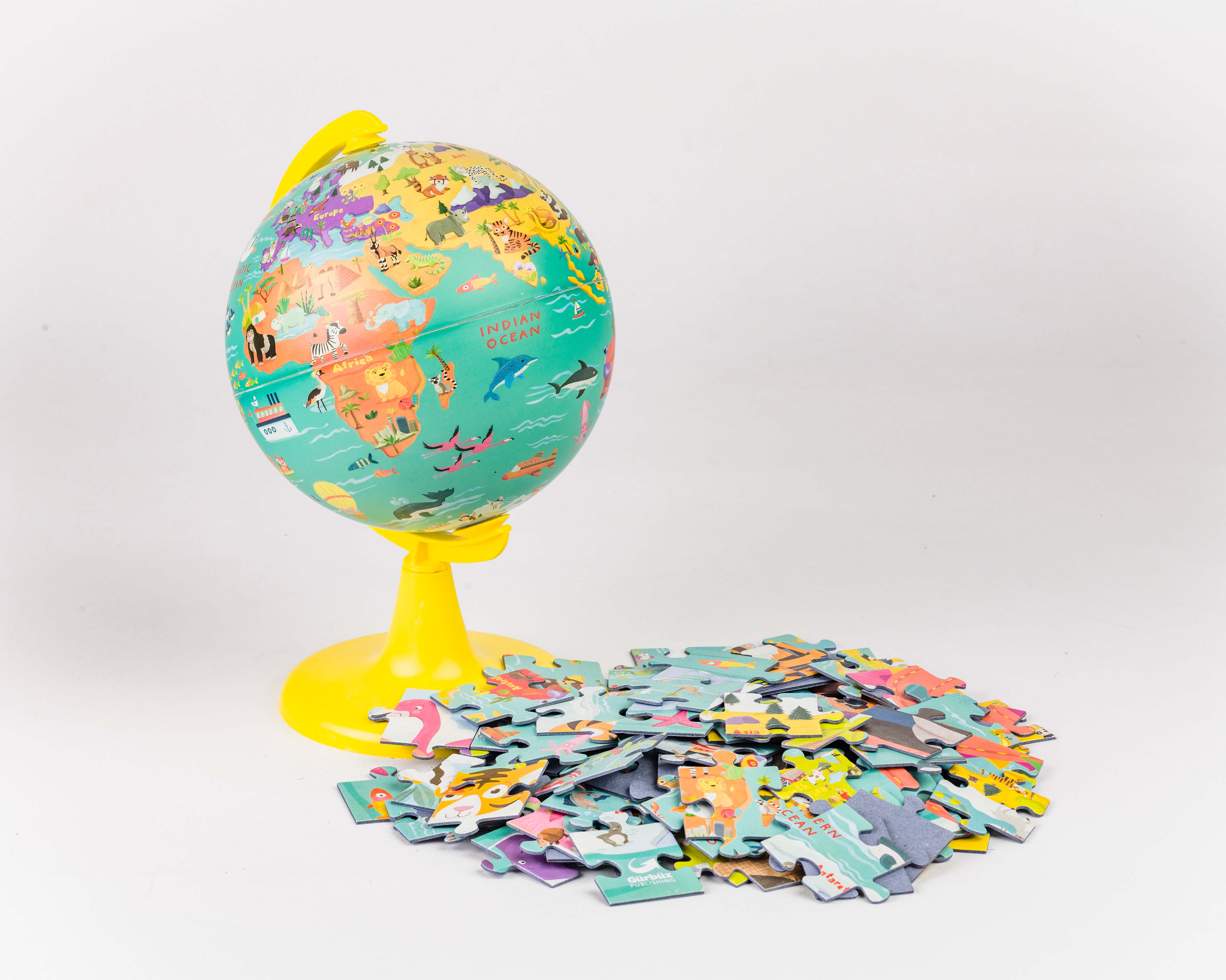 A globe puzzle set in different concepts to teach children about the world, continents, and oceans!