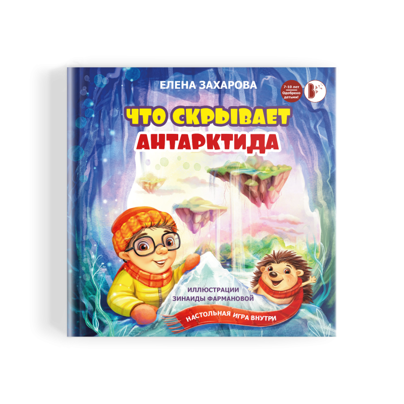 The book has been welcomed by children and teen-agers from 16 countries of the world. - Foursquare form - Fully colored inside - 2 in 1: book + tabletop game Have you known that in Antarctica there is the deepest crater in the world? And Bogdan also did not guess when secretly boarded the flight. He went to Antarctica to find and save disappeared scientist father. He took with himself a funny Zefirka hedgehog, that became his true friend and magical compass. They will have dangerous and unbelievable adventures underworld. The travelers will have to save themselves from bee-bears, fly on dragon birds, meet sea elephants, actinias and flying isles. Have the heroes managed to find Bogdan`s father? You will find out it from the story where the truth and myth, science and magic are skillfully interlocked. There is a surprise in the book a bright roll-and-move game inviting to start your own Antarctic adventures without hesitation. Attention! Reading the book arouse 7-10 years old children`s admiration and increase interest to the mostly underexplored continent. The author`s son acted as the prototype for the book main hero. As a result of it the book «What Antarctica Hides» became for the boy more interesting than gadgets (as the author says the book saved her son from gadgets). Computer monsters lost the battle against the book. The roll-and-move game involves the whole family in Antarctic adventures!